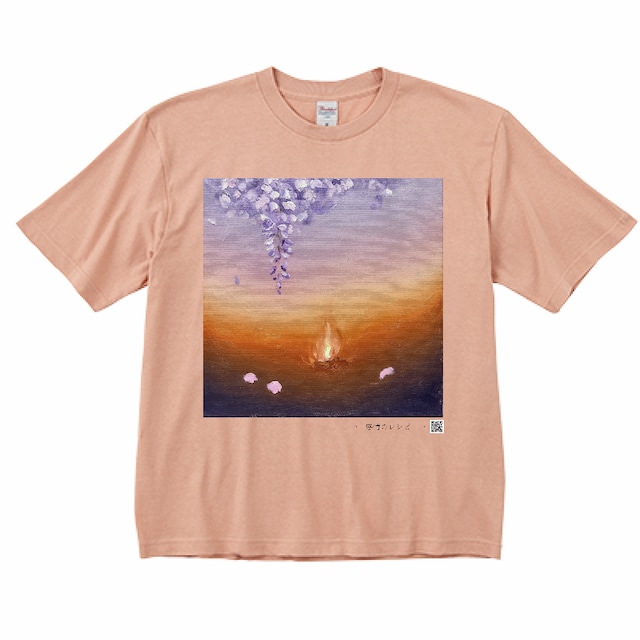 優しい世界×油絵アートビッグシルエットTシャツ ダスティピンク|音楽と物語の世界へようこそ