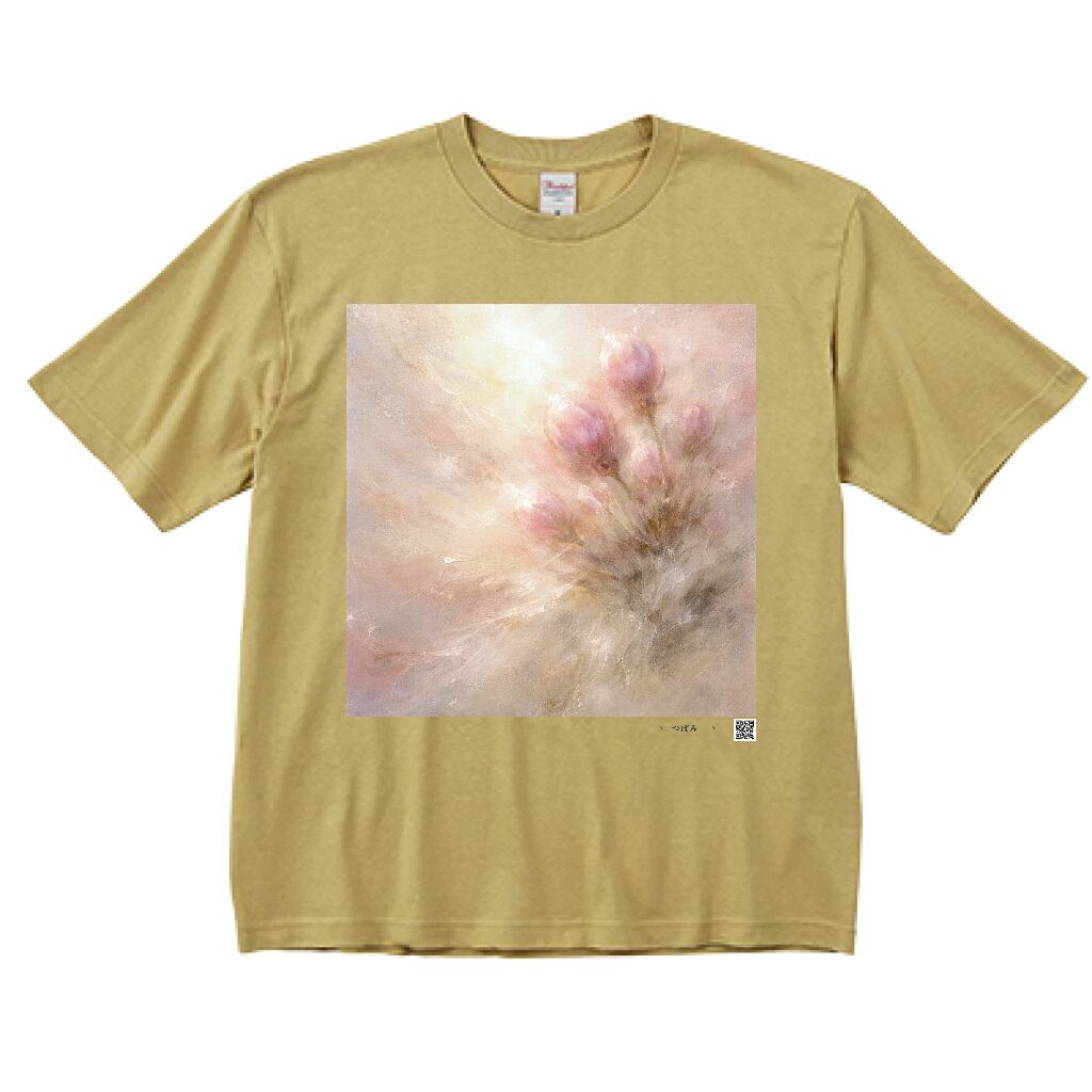 つぼみ×油絵アートビッグシルエットTシャツ サンドカーキ|音楽とアートの世界へようこそ