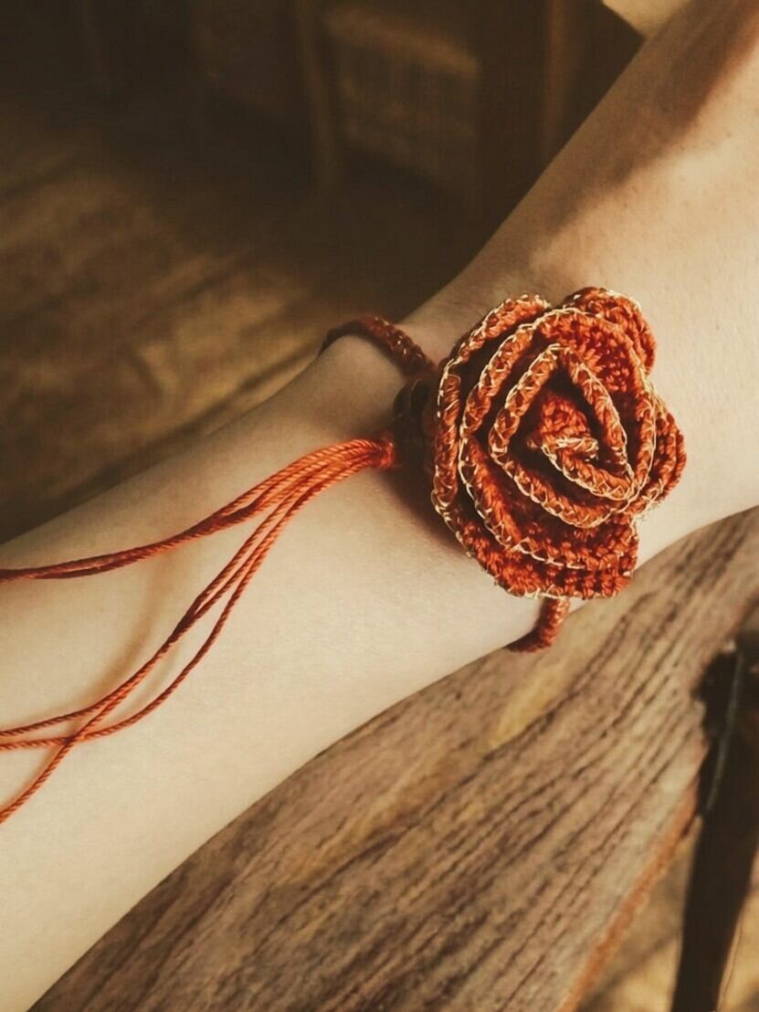 優しい世界|物語をまとう オレンジ色の薔薇ブックマーカー兼ブレスレット